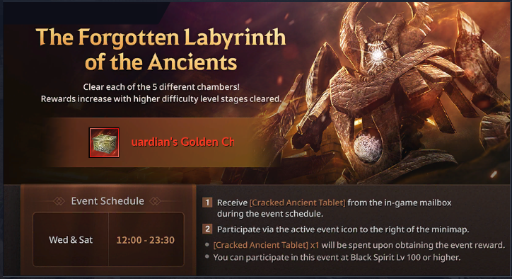 - Pour relever le défi du Labyrinthe antique oublié, vous aurez besoin d'une [Tablette antique usée]. Vous pourrez récupérer la Tablette antique usée dans votre boîte aux lettres lorsque le Labyrinthe antique oublié sera ouvert.